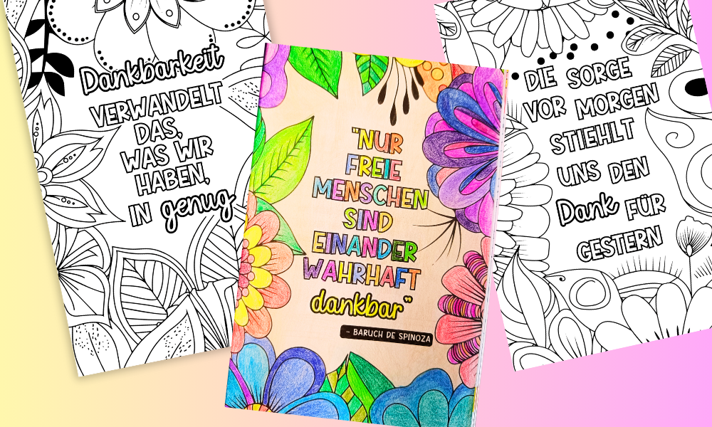 Ausmalseiten mit stärkenden Sprüchen und achtsamen Zitaten laden Dich ein, zur Ruhe zu kommen und Deiner Kreativität freien Lauf zu lassen. So kannst Du Inhalte des Tagebuchs auf eine neue, meditative Weise vertiefen.
